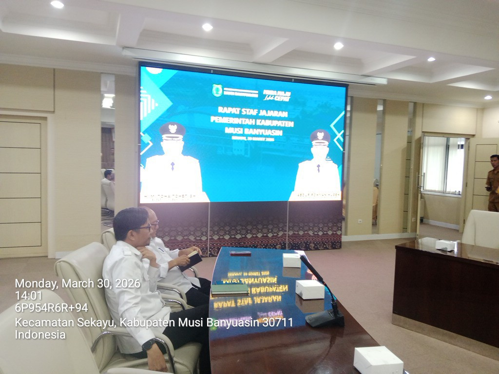 Direksi PT. Muba Energi Maju Berjaya (Perseroda) Direktur Utama Bapak H. DONNY MEILANO dan Direktur Umum H. PANCA MUBALA menghadiri Rapat Staf Jajaran Pemerintah Kabupaten Musi Banyuasin yang dipimpin oleh Bupati dan Wakil Bupati Musi Banyuasin.