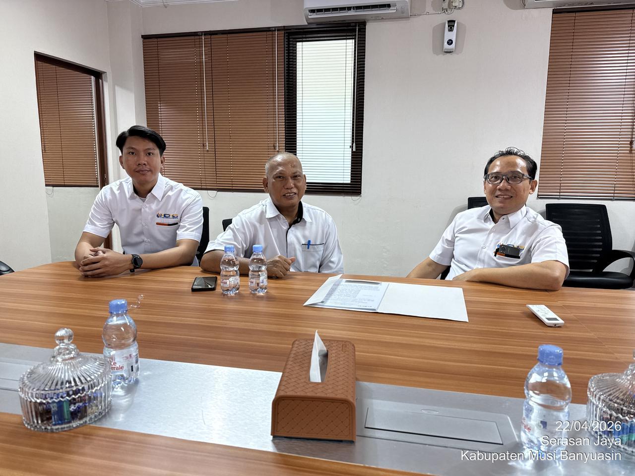 Direktur Keuangan PT. Muba Energi Maju Berjaya (Perseroda), Bapak FERY ANTONI KURNIAWAN dan Sekretaris Perseroda Bapak PRATAMA, melakukan Konsolidasi dengan Kepala Bidang Pengelolaan Aset Badan Pengelola Keuangan dan Aset Daerah Kabupaten Musi Banyuasin, Bapak A. KARTIKO.